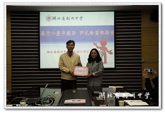 游建军副主任以“善行仁爱布德泽 阳光雨露润新苗”为题向省市慈善领导汇报了我校阳光班的办班工作,介绍了学校承办慈善“阳光班”的经验做法,省市领导对我校阳光班的工作表示了高度的评价。接着,荆州市慈善总会郭为学调研员和朱胜祥校长提出了对办好慈善“阳光班”的建议和意见。随后,慈善总会的领导跟我校阳光班的班主任和部分阳光生进行了亲切的交谈,深入了解一线教师和阳光生的实际需求。