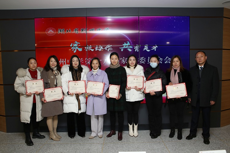会上推选产生了新一届家长委员会常务委员,朱胜祥9位常务委员颁发聘书