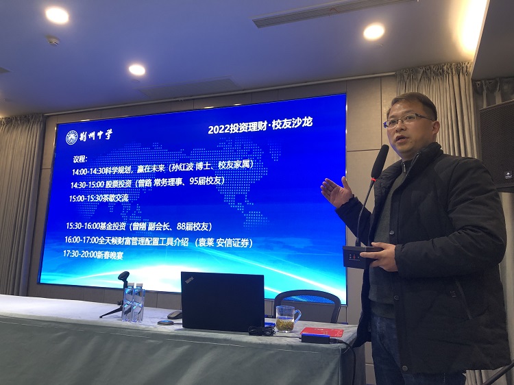 副会长曾刚分享了基金投资的知识。作为国内公募基金的知名专家,曾刚校友在基金选择及购买时机上给校友们给出了中肯的建议。
