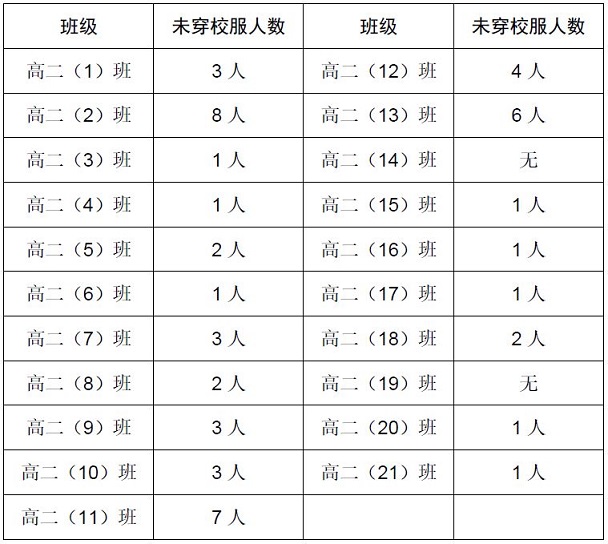 "文明礼仪与安全教育月"第1周校服专项检查情况