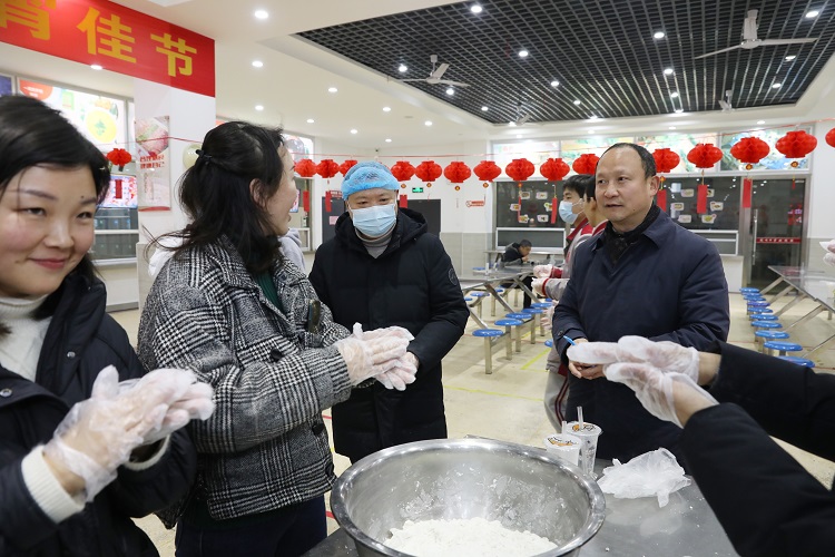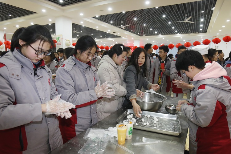 汤圆,是我国传统节日元宵节最具有特色的食物。汤圆象征团圆美满,吃汤圆也意味着在新的一年里阖家幸福、团团圆圆,所以是正月十五元宵节必备美食。活动现场,在食堂师傅的指导下,学校领导与学生亲手包起了汤圆,共同体分享节日的喜悦。