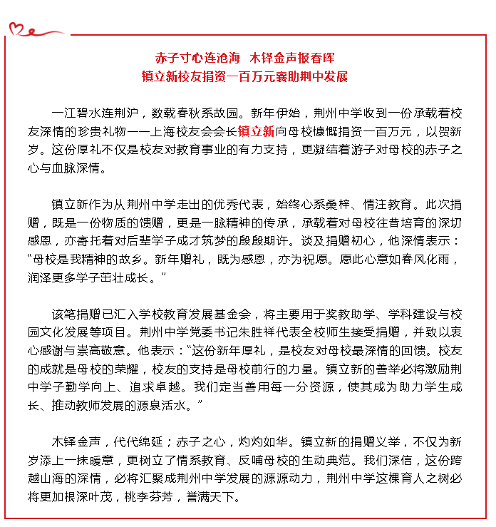 【校友】镇立新校友捐资一百万元襄助荆中发展