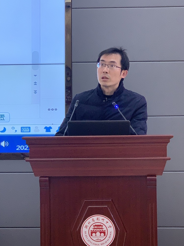 顾琼老师与大家交流学习心得。会上,顾老师与大家分享赴宜昌夷陵中学观摩学习的心得体会,并结合自身积累谈对2021年湖北高考试卷的认识,特别强调高考试卷中的基础性、综合性、运用性和创新性特征,并相应指出备考建议。