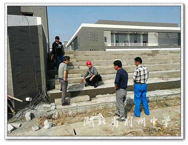 9323彩票新校区施工并未因国庆假期而中断。10月3日,技术总监与设计总工分别查看了石材质量、教二与教三之间连廊石材铺装施工、篮球场施工等建设情况,商议田径场看台水磨石施工细节,落实围墙栅栏安装事宜,并清除绿化花坛内的建筑垃圾和各种杂物。