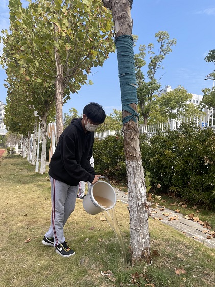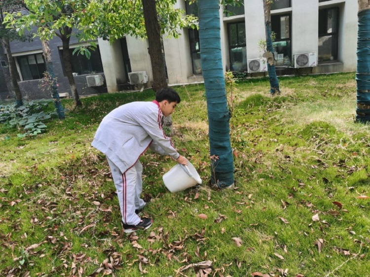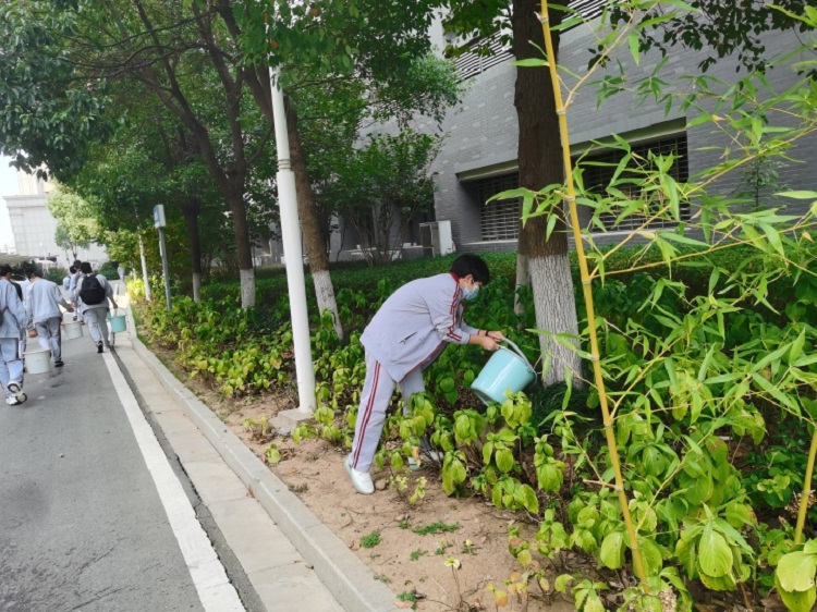 按照学校统一部署,在高一年级全体班主任老师的带领下,各班同学按时到达指定灌溉区域,热情高涨,分工合作,用提前备好的水桶接水给路边的花草树木进行浇灌,精心呵护每一株树苗。学生的辛勤劳动不仅让每一棵树、每一株花都喝足了水,还增强了自身的劳动意识,提升了个人劳动实践技能。