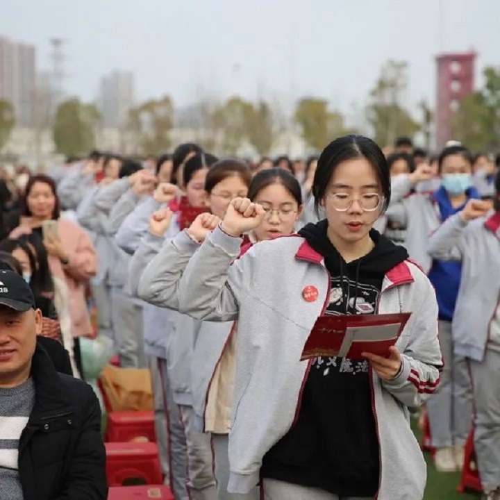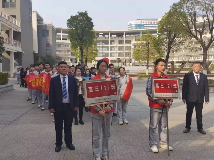 今天,我们已经擂响了战鼓!我坚信,只要我们笃定实干,克难履艰,持之以恒,自信自强,定能中流击水,笑立潮头!祝愿同学们:拼搏百日、圆梦荆中!