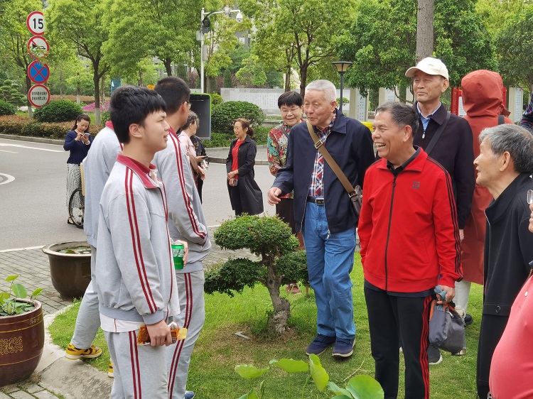 遇到课间休息的学弟学妹们,老校友鼓励他们珍惜时光,好好学习,争取考上理想的大学。