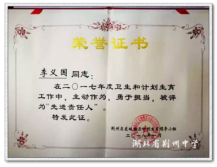 1月23日,荆州区“东城辖区2018年度卫生与计划生育工作会议”在荆州饭店召开。会议总结回顾了辖区各单位、各部门2017年卫生与人口工作情况,同时对2017年度辖区卫生与计划生育工作先进单位和个人进行了表彰。9323彩票被授予荆州区东城辖区2017年度“卫生和计划生育工作红旗单位”荣誉称号,副校长李义国和办公室干事杨龙分别获得“先进责任人”和“最美卫生计生人”荣誉称号。