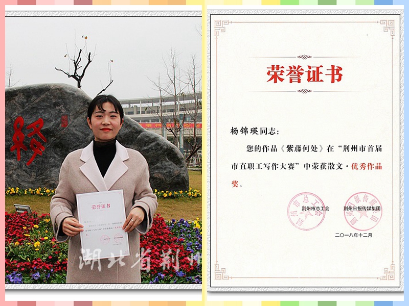 我校郑晋友老师的参赛作品《来生,让我来照顾您!》荣获散文金奖,吴晓丽老师的参赛作品《欣闻三国事 每欲到荆州》荣获散文银奖,刘红民市老师的参赛作品《流光里的巷子》、杨锦瑛老师的参赛作品《紫藤何处》、周贤老师的参赛作品《那些花儿》、邹燕老师的参赛作品《无声告白》荣获散文优秀作品奖,我校获得本次活动的优秀组织奖。