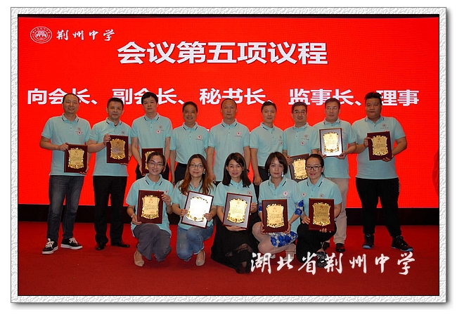 朱胜祥感谢深圳校友会向母校捐赠“求索”雕塑 ,这座即将屹立在天问广场中央的大型雕塑将激励荆中学子不忘初心,上下求索。向深圳校友会会长、副会长、理事、秘书长、监事长颁发聘书。