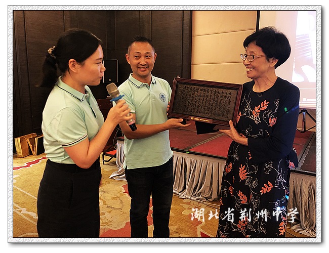 座谈会现场还回顾了校名石捐赠仪式的场景,并展示了母校颁发的捐赠证书。2017年4月30日,为祝贺母校乔迁之喜,1989级高一(8)班校友们出资38万认捐了学校北大门的校名石。这块饱含着校友们对母校深情的校名石名曰雪浪石,长15.6米,高3.1米,宽1.1米,重85吨。校名石的正面镌刻着著名书法家赵朴初先生题写的校名,背面刻有“宛如春风来,桃李竟芳华。1989级高一(8)班赠”字样,既有对母校的祝福,又巧妙地将班主任刘婉华老师的名字嵌入其中,李先云校友说:“刘老师就像我们的妈妈一样关心爱护我们,母爱似海泽一世,校恩如山惠终身!”