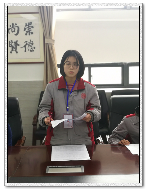会上,学校膳食部成员郑丁丁向代表们汇报了膳食部成员及学生代表检查食堂的情况,同学们对于食堂整洁的操作间、有序的副食库房、完善的规章制度表示满意。学校膳食部部长张心怡对前期开展的食堂满意度调查进行汇报,本次调查在三个年级随机抽取共21个班级,发放问卷近1000份,比较全面的反馈了同学们的意见和建议。张心怡分析了食堂问卷调查的结果,此次调查学生对食堂的满意度超过80%,同学们非常认同食堂管理和员工们的辛勤付出。同学们也对食堂饮食服务、食堂菜品等提出大量合理建议。家长和教师代表对于食堂在猪肉价格急剧上涨引起的原材料价格普遍上调的情况下,食堂在保证菜品质量基本不变、坚持菜品价格不调整表示肯定,也希望食堂能继续在菜品花色和口味上下功夫,更好的服务师生。